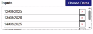 A delete icon appears next to each date, allowing for easy removal. You can also click on individual dates to delete them directly.