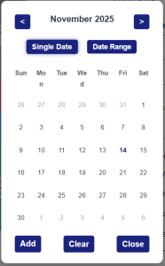 - A range of dates (e.g., Jan 1, 2024 to Dec 31, 2024)