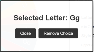 The selected letter pops up on your screen in a clean dialog box. Keep spinning as many times as you like!