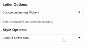 You can choose from several built-in modes, depending on what kind of letters you want to include in the spin: